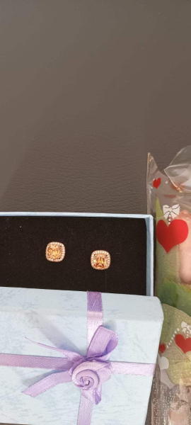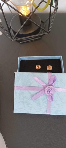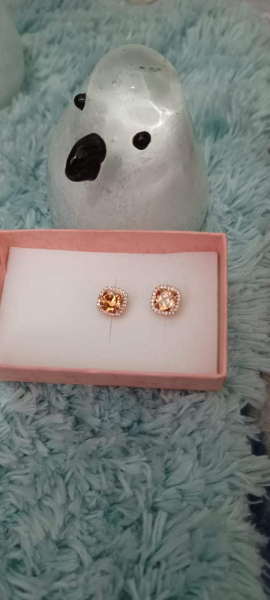 Pendientes de boton cuadrado, de piedra de nacimiento color champagne con enchape oro rosa  $6.50