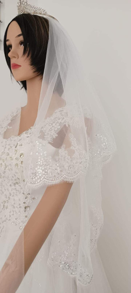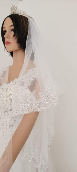 Velo de novia romantico, blanco marfil, apliques de encaje con lentejuelas de 2 capas con peine $25