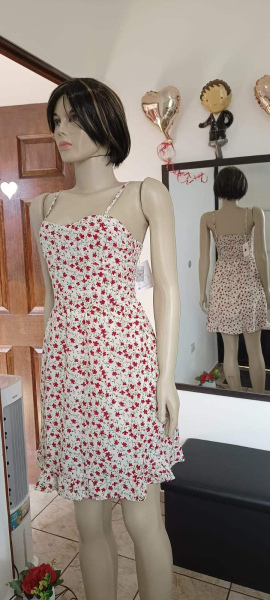 Vestidos de verano talla unica con estampado vintage bohemio para mujer, ajustado de cintura alta, corte A, cuello en v, sin mangas hombros descubiertos ajustables. En Color blanco, ocre y negro.