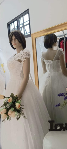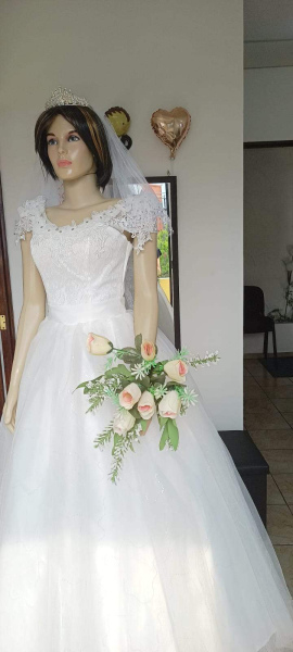 Vestido de novia con flores de encaje, hombros al aire, con corset,detalle en la cintura, tejido orgaza bordada y tul, vestido de boda de baile. TALLA S, M, L. Precio $285.