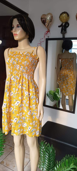 Vestidos de verano talla unica para mujer, minivestido de cintura alta con tirantes finos en color perla,Azul negro, verde, amarillo y rosa pastel